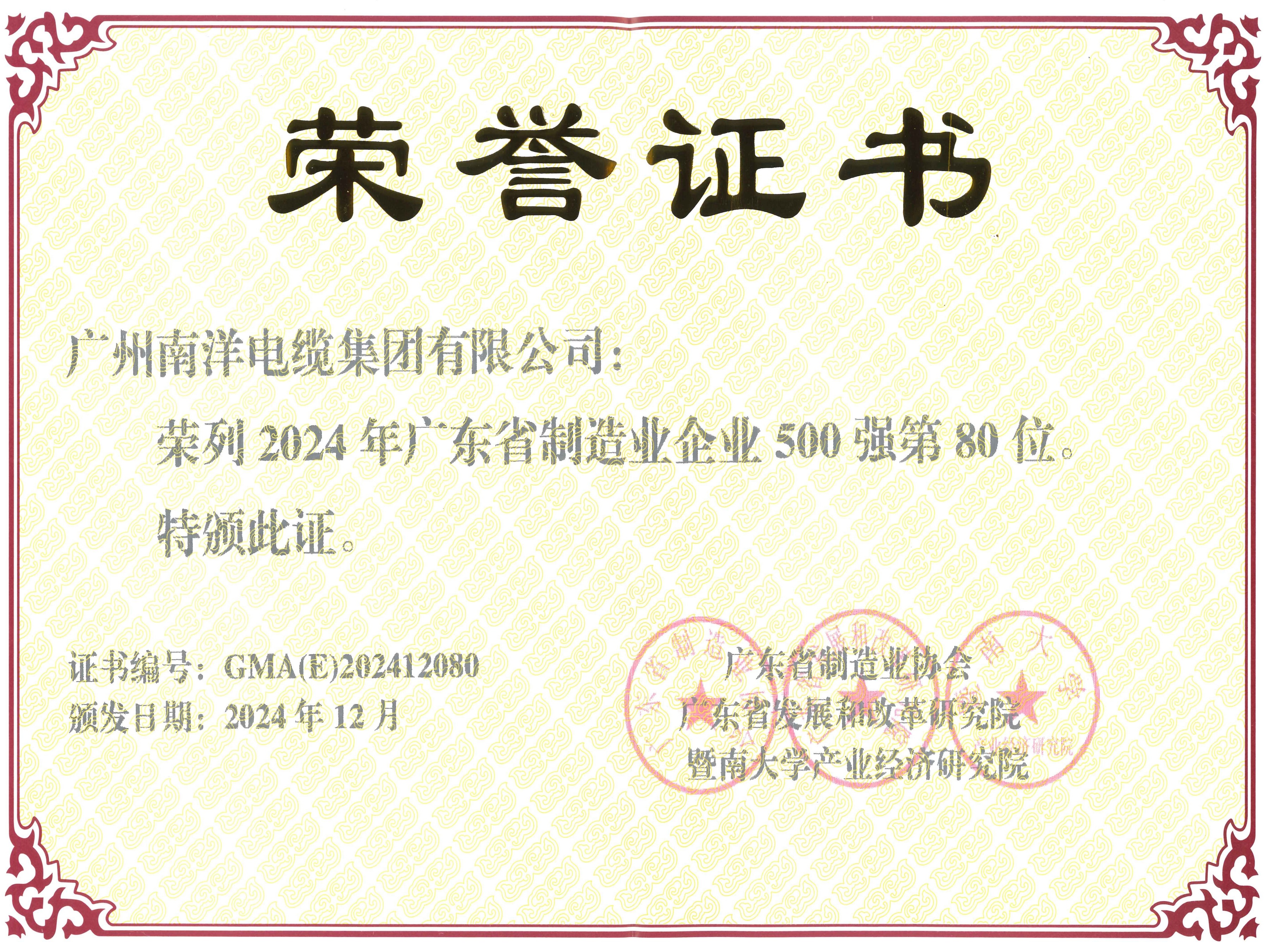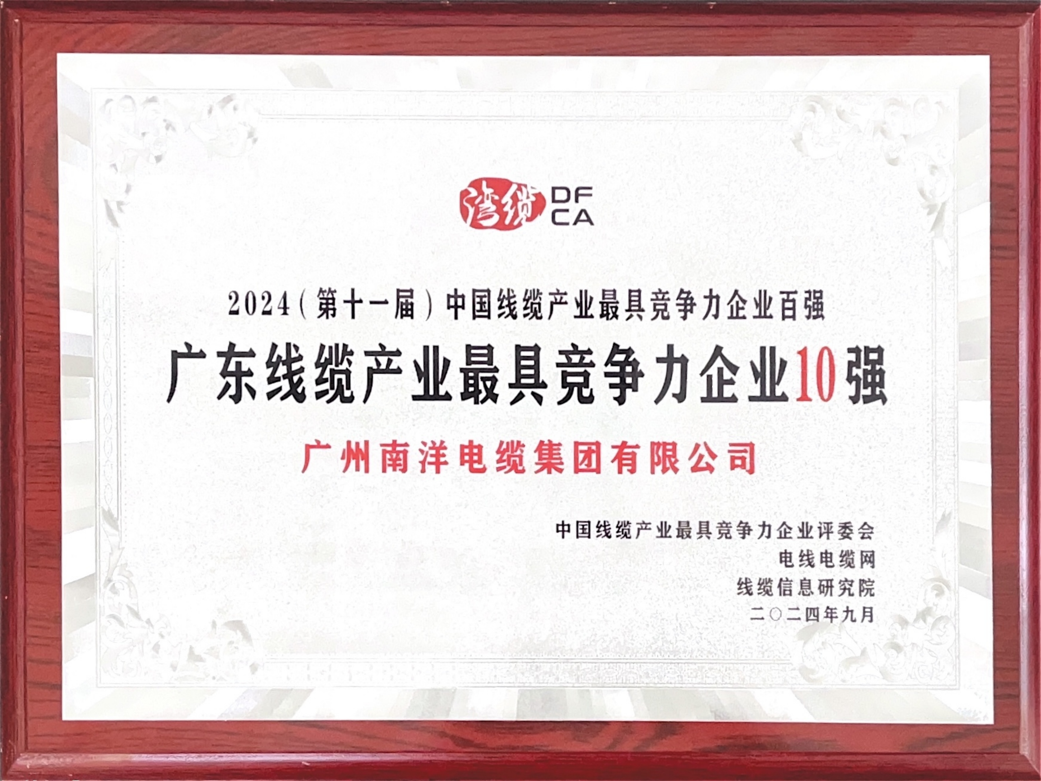 • 2024年度廣東線纜行業最具競爭力企業10強第一名