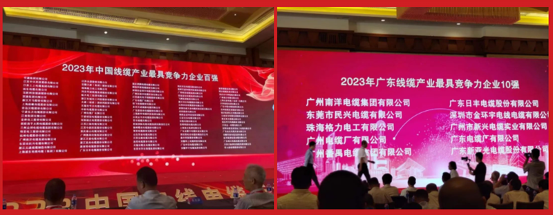 會上發布了由中國電線電纜網和線纜世界聯合主辦中國線纜產業最具競爭力企業評測工作結果,廣州南洋電纜集團有限公司再次榮獲“2023年中國線纜產業最具競爭力企業20強”稱號!位列廣東線纜產業榜首!連續6年蟬聯中國線纜產業20強!連續6年蟬聯廣東線纜產業最具競爭力企業第一名!