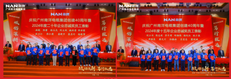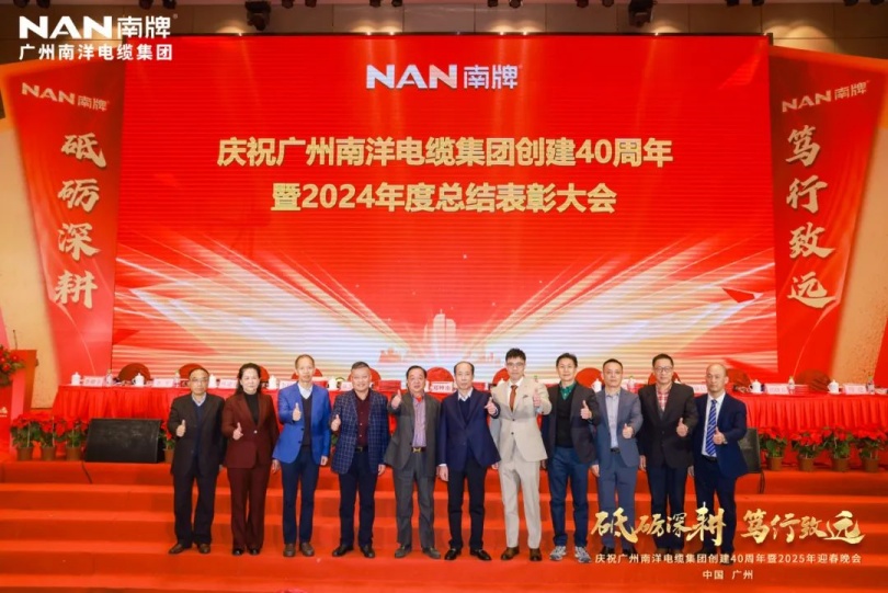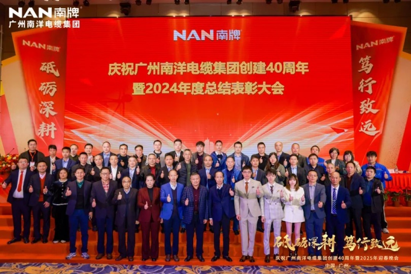 2025年1月11日,廣州南洋電纜集團在廣州長風凱萊酒店舉行了以“砥礪深耕 篤行致遠”為主題的創建40周年暨2024年總結表彰大會和2025年迎春晚會。創始人鄭鐘南、董事長鄭漢武、總經理章先杰、汕頭公司代表、天津公司代表、各區域銷售經理及經銷商、公司管理層及各部門員工共計800余人參加本次大會。